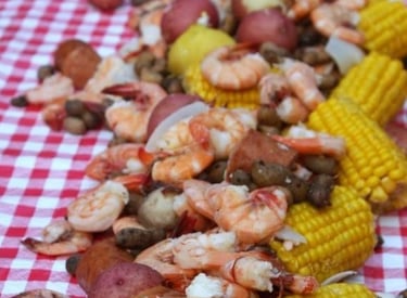 Join us for a low country boil! A low country boil is a southern traditional, communal one pot meal featuring seafood, corn, smoked sausage, potatoes and other ingredients.